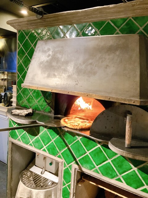 そして、存在感を放つ緑のタイル張りの薪窯から